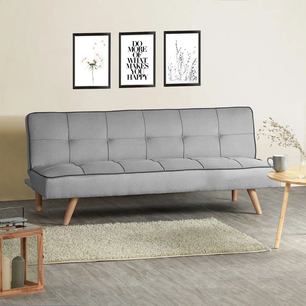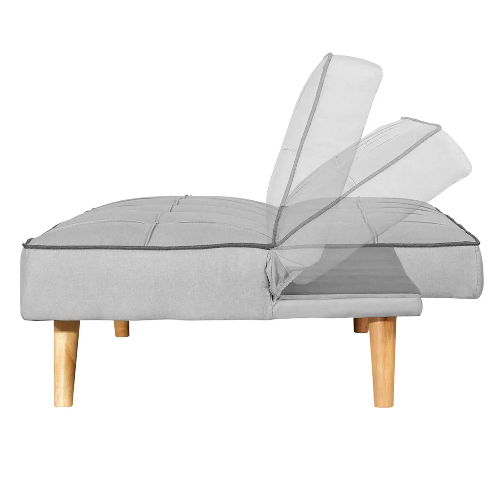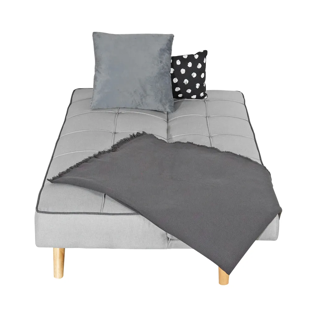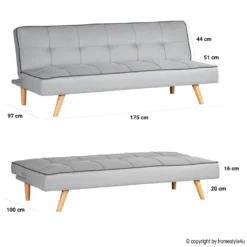 Der Stoff vom Sofa mit Bettfunktion bzw. vom 3 Sitzer ist optisch sehr schön strukturiert und stylisch mit gesteppten Nähten abgesetzt. Das Klappsofa bzw. Futonsofa hat ein stabiles Holzgestell in natur.