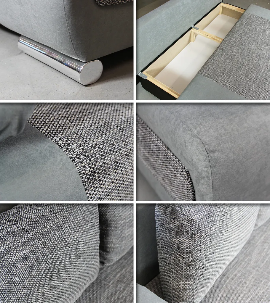 - Sofa mit Chromfüße(vorne) und Schwarz Kunststofffüße(seitliche und hinten)