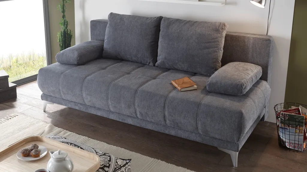 Mit wenigen Handgriffen erweitern Sie die Liegefläche auf ca. 200 cm x 160 cm. Der Umbau erfolgt hierzu kinderleicht und ermöglicht es Ihnen auf platzsparende Weise zusätzlich zwei Schlafplätze bereit zu stellen. Die Nosagfederung sorgt hier für einen angenehmen Schlaf-, Liege- und Sitzkomfort. In dem integrierten Bettkasten finden Ihre Decken und Kissen Ihren ordentlichen Platz. Ebenfalls erhalten Sie in diesem 2 große Rückenkissen und 2 Armlehnkissen für die Unterstützung Ihrer optimalen Sitz- oder Liegeposition.