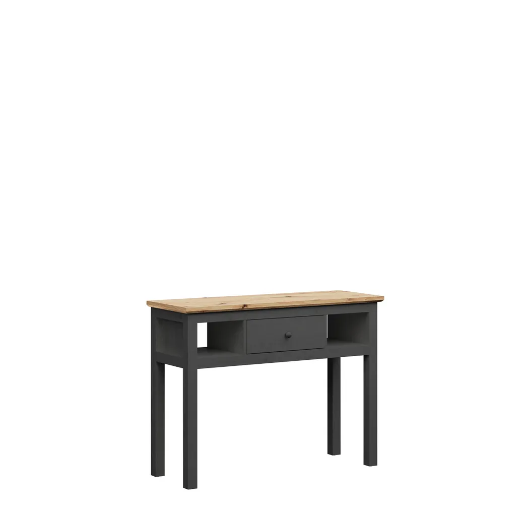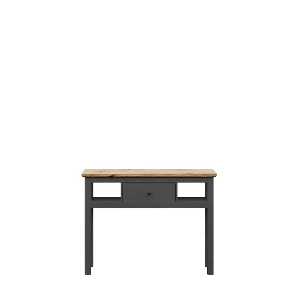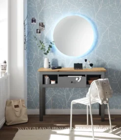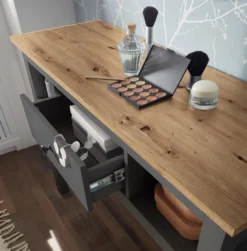 Der Schminktisch „Bozeman I“ ist hier in edlem Graphit erhältlich, welches stilvoll mit charakterstarker Artisan Eiche Nachbildung kombiniert wird. Beide Farben bilden einen tollen optischen Kontrast zueinander und dank seiner Aufmachung sowie dem Knopfgriff wird dem Schminktisch hier eine moderne Landhausoptik verliehen.