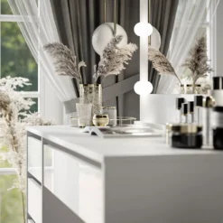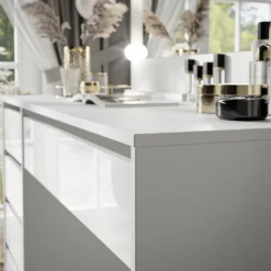 Die Schubladenfronten wurden aus einer Hochglanzplatte hergestellt