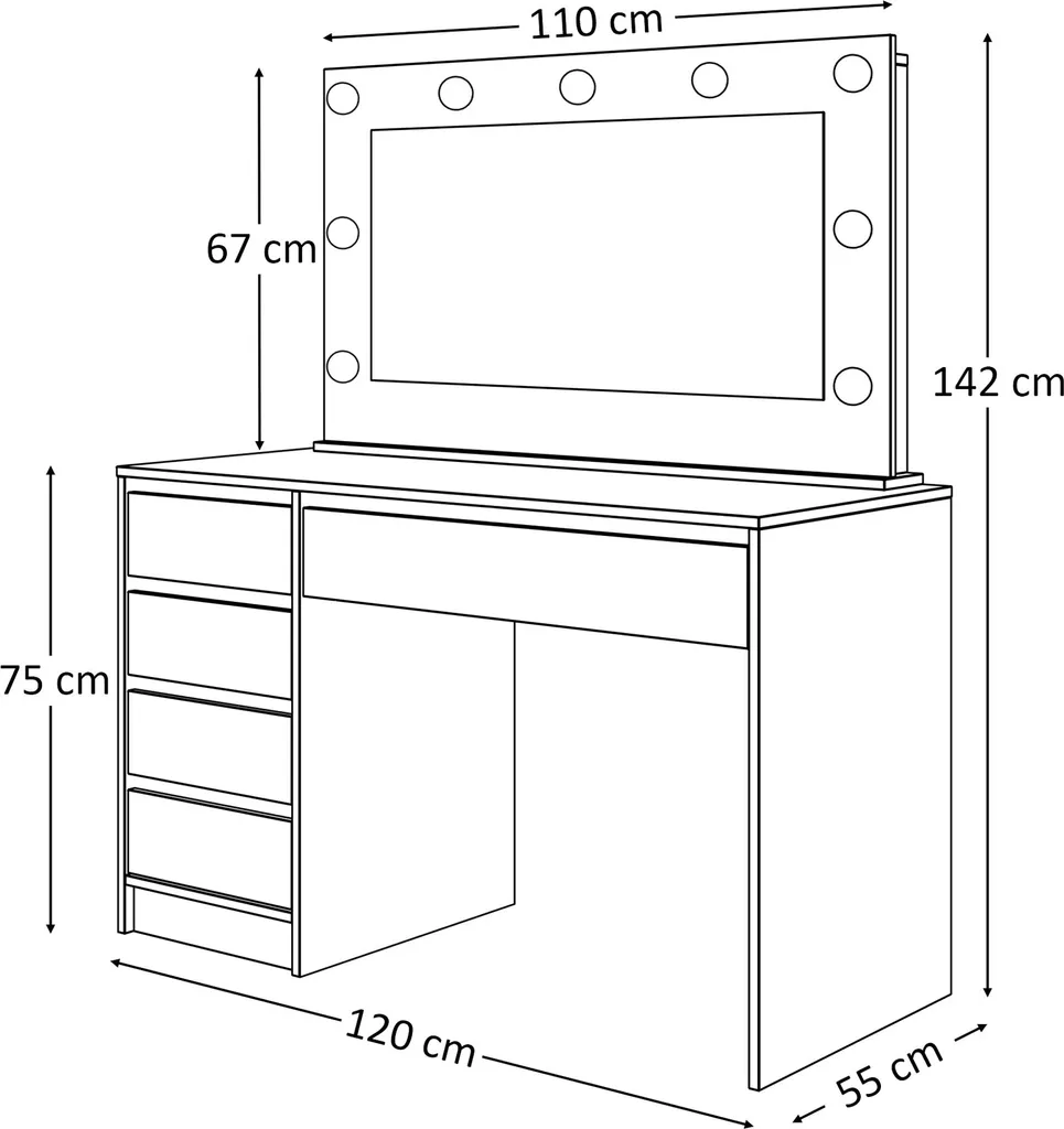 Ein universeller Schreibtisch- die Möglichkeit der Schubladenmontage sowohl auf der linken als auch auf der rechten Seite