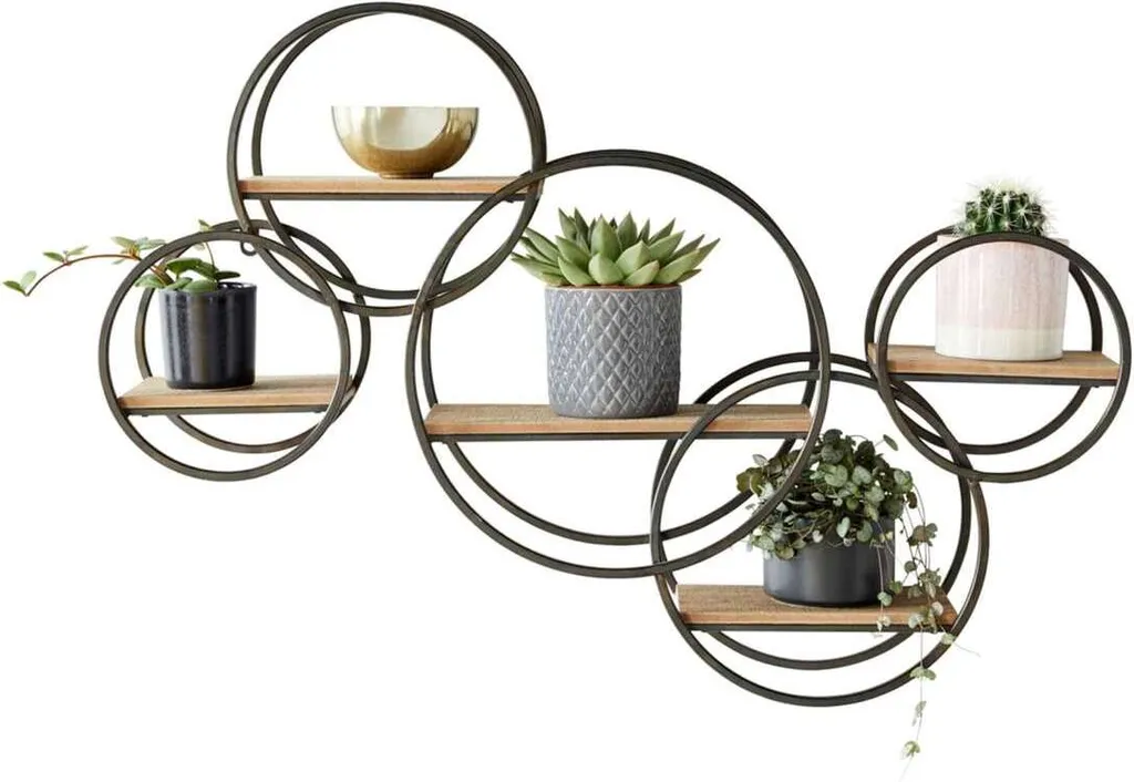 - Modernes Wand-Regal mit rundem Metallrahmen und Einlegeböden aus MDF