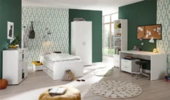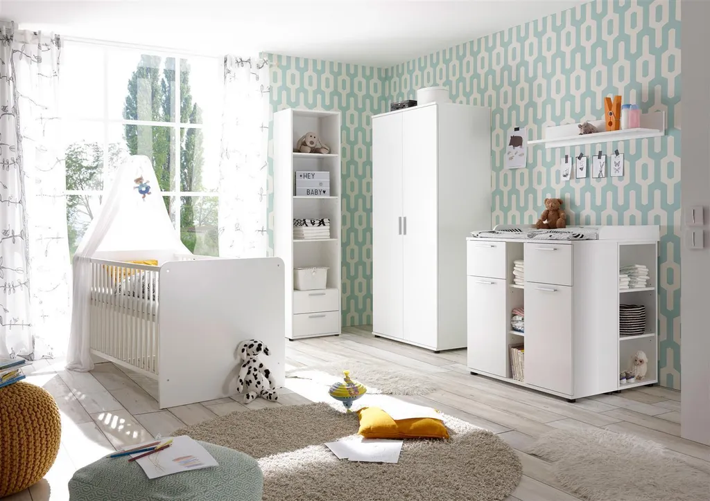 Sie sind auf der Suche nach einem schönen, kompletten Babyzimmer? Dann ist das gemütliche Designkonzept dieser Serie in heller Optik genau das Richtige für Sie. Dieses schöne Babyzimmer ist in einem zeitlosen Weiß gehalten. Die Möbel bieten ausreichend Stauraum und sind pflegeleicht. Der Schlafzimmerschrank bietet viel Platz auf engstem Raum und ist damit eine schöne und geräumige Stauraumlösung im Babyzimmer. Genug Stauraum für Kleidung, Bettwäsche & Spielzeug.