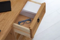 - Der Computertisch ist aus massivem Kiefernholz gefertigt.