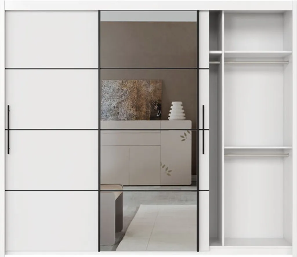 – mittlere Spiegeltür mit Griffleiste links und rechts
