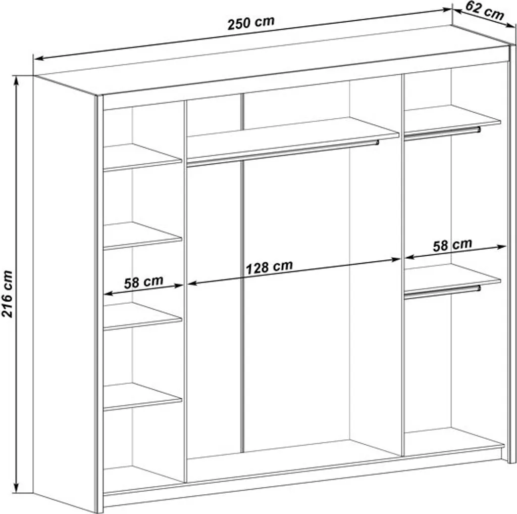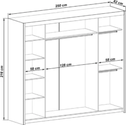 – B/T/H: 250 cm / 62 cm / 216 cm