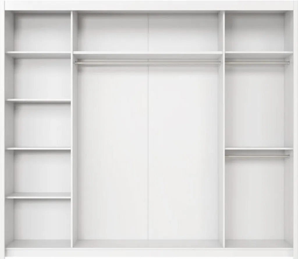 Durch die geräumige und großzügige Inneneinteilung bietet der Kleiderschrank Ihnen ausreichend Stauraum.