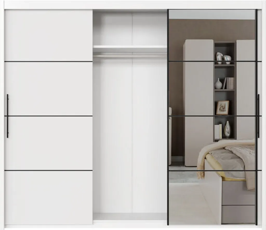 Moderner und funktioneller Kleiderschrank, mit Schwebetüren.