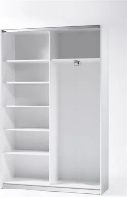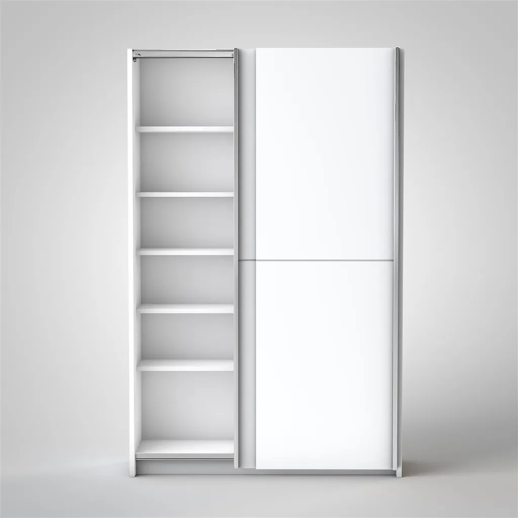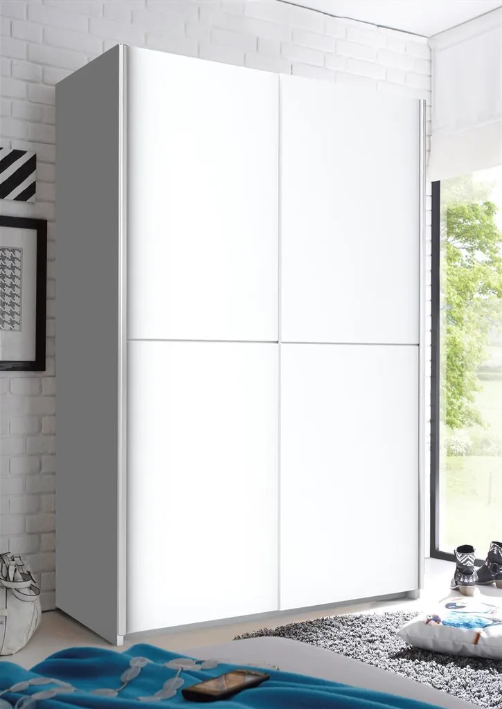 Der Schwebetürenschrank „Fred I“ ist hier in klarem Weiß erhältlich. Er fügt sich harmonisch in sämtliche Farbkonzepte ein, ohne dabei dominant aufzutreten.