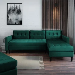 Die Variante mit einem Hocker kommt mit der praktischen Schlaffunktion. Der Hocker verwandelt das L-Sofa in ein großes Bett. Auf der großzügigen 205×140 cm Liegefläche finden problemlos 2 Personen Platz. Der clevere Mechanismus verhindert das Wegrutschen des Hockers und ermöglicht einen ruhigen Schlaf.