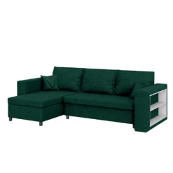 MERIEN ist ein geradliniges Ecksofa, das vor allem durch sein dezenten Minimalismus und seine hohe Funktionalität besticht. Für den gewünschten Sitzkomfort sorgen die Schaumpolsterung im Sitz, die einladend weichen Rückenkissen und die großzügige, tiefe Sitzfläche. Die Couch MERIEN lässt sich mit ein paar einfachen Handgriffen in ein bequemes Bett umfunktionieren, auf dem zwei Personen problemlos Platz finden. Die Bettwäsche, Decken, Kissen und Co. haben Sie im Bettkasten unter der Sitzfläche immer parat.