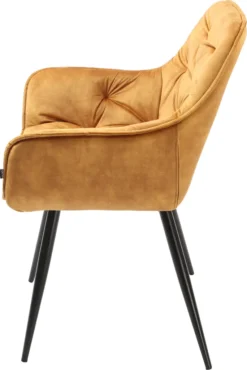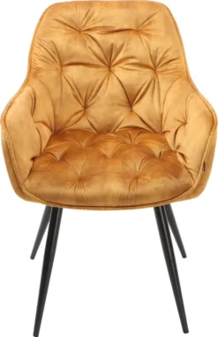 Der Polsterstuhl Paraguay ist ein Vorschlag für moderne Räume. Der profilierte Korpus aus leicht geneigter Rückenlehne, kleinen Armlehnen und Möbelschaumfüllung hilft Ihnen dabei, die richtige Körperhaltung einzunehmen und beizubehalten. Polsterungen aus Samtstoff zusammen mit charmanten Steppungen lassen ihn äußerst schick wirken. Der Stuhl wird durch schlanke, hohe Beine ergänzt. Sie sind diejenigen, die das visuelle Gewicht des Blocks wunderbar ausgleichen und dafür sorgen, dass das Ganze seine Umgebung nicht überwältigt.