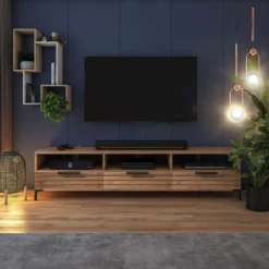 Mit dieser TV-Bank erhalten Sie genügend nützlichen, staubgeschützten Stauraum. Das ganze Zubehör und all die Utensilien sind hier blickdicht aufgehoben, wodurch Ihre Fernsehecke einen stets aufgeräumten Eindruck macht. Die grifflose Front perfektioniert den minimalistischen Look und gibt dem Raum schlichte Eleganz. Zum Öffnen der Klappe greifen Sie ganz einfach an ihren Seitenrand. Dank seiner simplen Form fügt das SKYLARA TV-Board sich auch in jede Einrichtung problemlos ein.