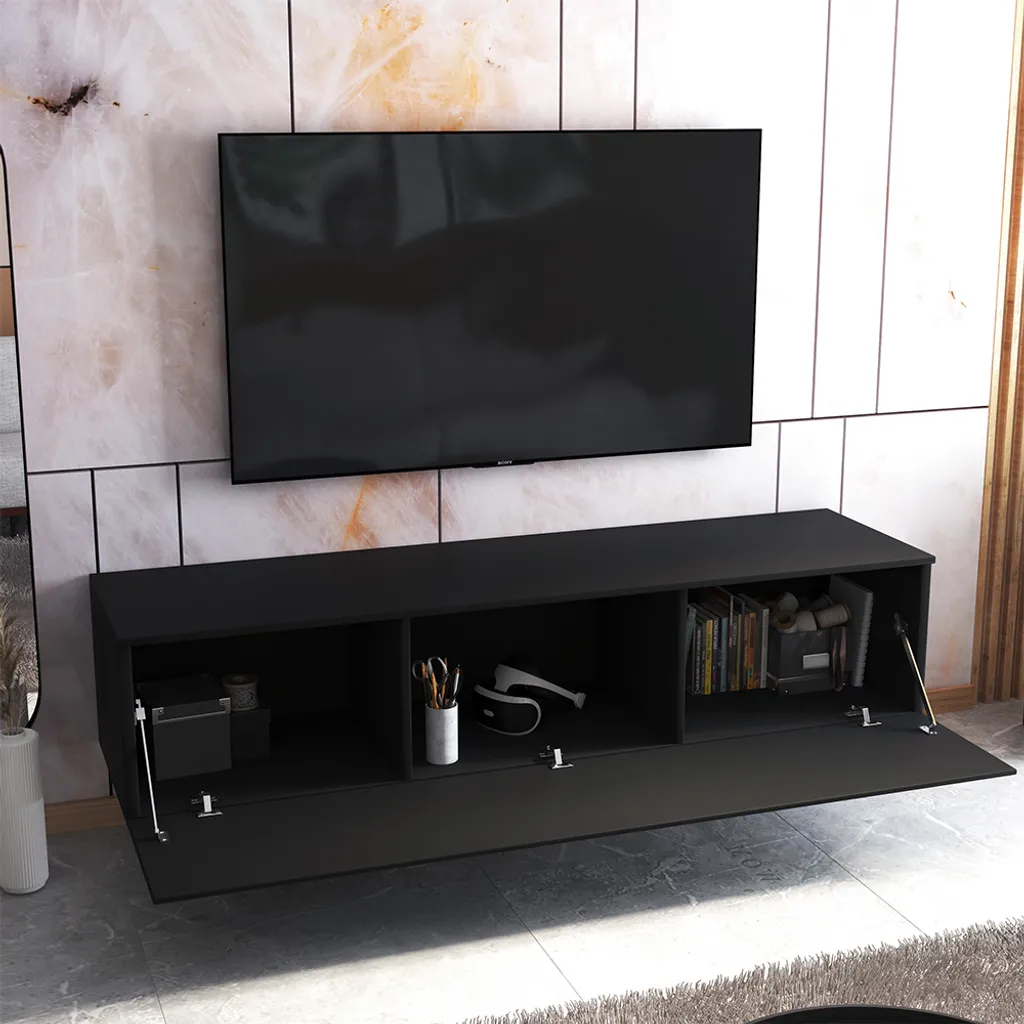 Mit dieser TV-Bank erhalten Sie genügend nützlichen, staubgeschützten Stauraum. Das ganze Zubehör und all die Utensilien sind hier blickdicht aufgehoben, wodurch Ihre Fernsehecke einen stets aufgeräumten Eindruck macht. Die grifflose Front perfektioniert den minimalistischen Look und gibt dem Raum schlichte Eleganz. Zum Öffnen der Klappe greifen Sie ganz einfach an ihren Seitenrand.