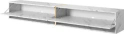 Mit dieser TV-Bank erhalten Sie genügend nützlichen, staubgeschützten Stauraum. Das ganze Zubehör und all die Utensilien sind hier blickdicht aufgehoben, wodurch Ihre Fernsehecke einen stets aufgeräumten Eindruck macht. Die grifflose Front perfektioniert den minimalistischen Look und gibt dem Raum schlichte Eleganz. Zum Öffnen der Klappe greifen Sie ganz einfach an ihren Seitenrand. Dank seiner simplen Form fügt das SKYLARA TV-Board sich auch in jede Einrichtung problemlos ein.