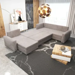 - Eine puristische, elegante und multifunktionale Wohnlandschaft mit Stauraum und Schlaffunktion