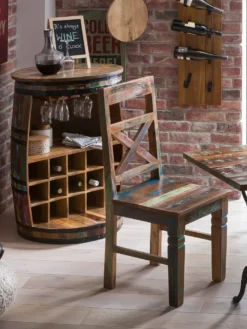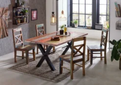 Ein ungewöhnliches Stuhl-Set … Ja, aber wer will schon „gewöhnlich“? Jedes Stück Holz wird so „gelegt“, dass sich ein harmonisches Bild ergibt. Durch den Verzicht auf moderne Hilfsmittel bekommt jedes Stück ein eigenes „Gesicht“ fernab unserer oft langweiligen Perfektion. Richtig integriert ergeben diese Möbel auch in modernem Ambiente ein besonderes Bild.