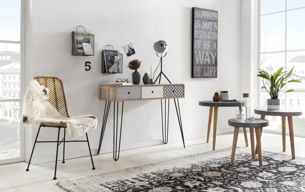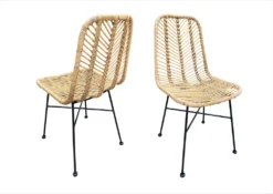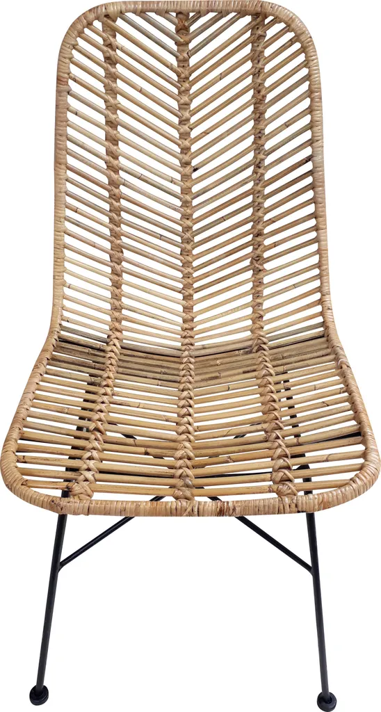 Mit schnell nachwachsenden Rohstoffen kann man nichts falsch machen. Dieser Rattan-Stuhl, ausgestattet mit einem stabilen, schwarzen Metallgestell, passt sich dank seines warmen und exotischen Charmes jeden Wohnbereich an. Kombiniert zu Factory-Design oder Vintage, antik und rustikal, diese Sitzgelegenheit passt immer. Dekoriert mit einem hübschen Kissen als Einzelstuhl im Gästezimmer oder Schlafzimmer. Im Esszimmer und Wohnbereich bietet er einen bequemen Sitzplatz für Ihre Gäste. In großen Dielen oder Fluren, auf der Terrasse oder im Wintergarten bietet dieser Stuhl mit seiner wunderschönen naturbelassenen Optik einen Platz zum Ausruhen. Das Rattan-Geflecht im Rückenteil des Stuhls ist in Fischgräten-Optik dargestellt, dicht strukturiert und stabil. Die Optik des Geflechts in der Sitzfläche wurde gerade gehalten und ist ebenfalls stabil und dicht strukturiert.