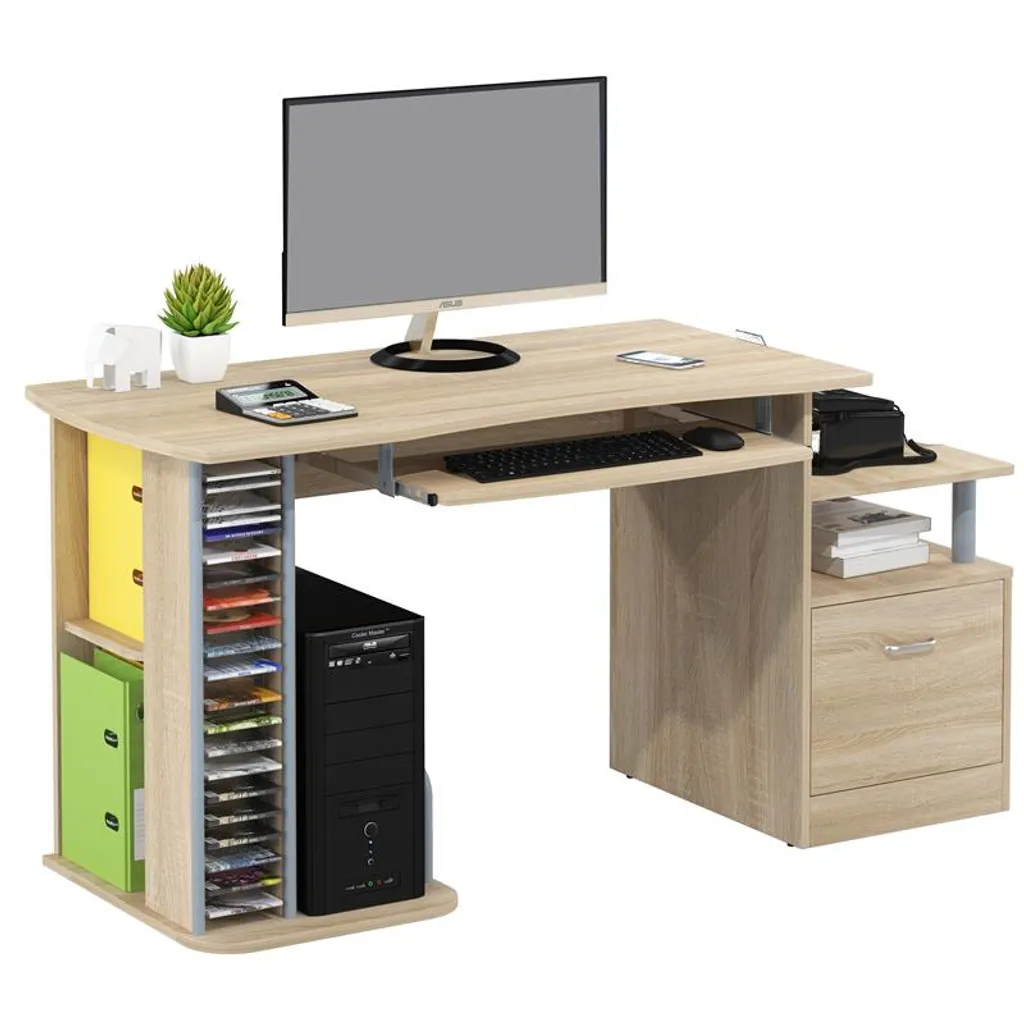 Büro oder Home Office. Ob in den eigenen 4 Wänden oder im stilvoll eingerichteten Büro – das praktische Design in einer kompakten Form passt sich jedem Raum optimal an. Die eichefarbene Optik der robusten MDF Spanplatten vermitteln einen modernen Eindruck in Ihrem Arbeitsbereich. Mit vielen durchdachten Details und effizienter Nutzung der Gesamtfläche verkörpert der Büroschreibtisch genau das richtige Maß an Seriosität.