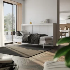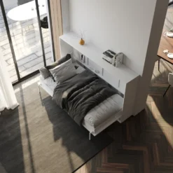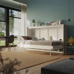 SMARTBett Schrankbett Classic mit Gasdruckfedern 100x200cm Horizontal Weiss | Wandbett, Wandklappbett fürs Gästezimmer, Büro, Wohnzimmer, Schlafzimmer, Ferienwohnung