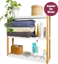 - Das Regal bietet optimale Ablageflächen für Handtücher, Kosmetik und andere Kleinigkeiten.