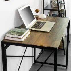Die Kombination aus dem schwarzen Metallgestell und der Tischplatte in Natur unterstreicht den industriellen Stil. Dadurch passt er hervorragend ins Büro und in Ihr Zuhause. Neben einem Schreibtisch kann er auch als Arbeitstisch, Computertisch oder Schminktisch genutzt werden.