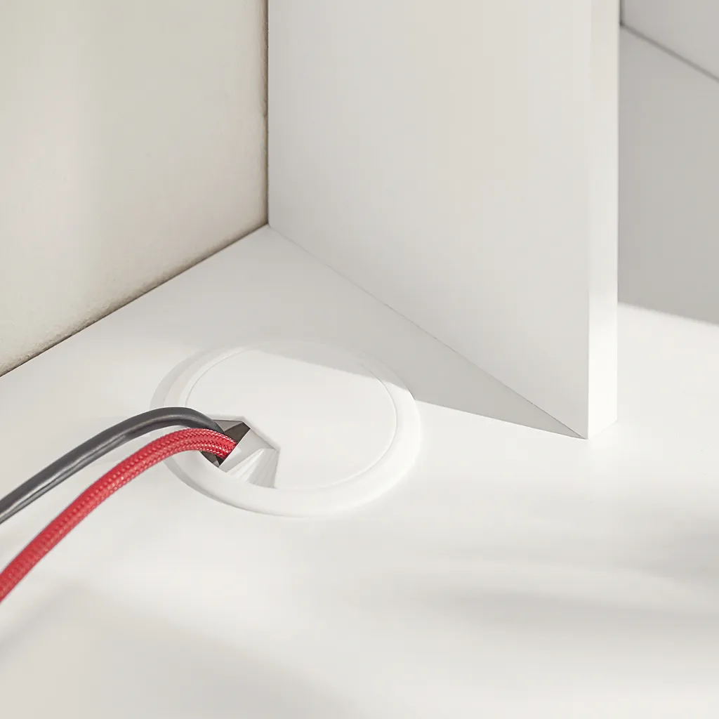 Dazu gibt es eine Kabel Loch-Abdeckung. Die Abdeckung ist in die Oberfläche einfügt um Ihren gesamten Kabeln Ordnung zu geben, anstatt über den Rand zu hängen.