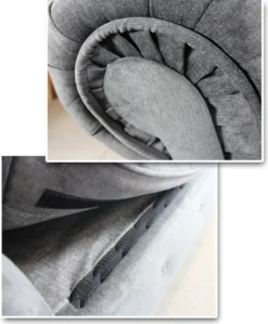 - Die Rückseite ist mit dem gleichen Material bezogen (Freistehendes Sofa)