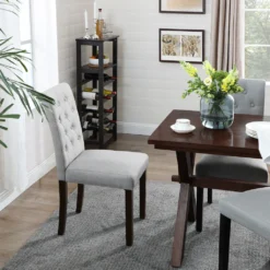 Präsentieren Sie Ihren guten Geschmack: Diese eleganten, schicken Esszimmerstühle sind mit ihrem schönen Aussehen und der geschwungenen Rückenlehne ein Blickfang, die einen wunderbaren Einstieg zum Essen bieten, bevor die Gerichte serviert werden