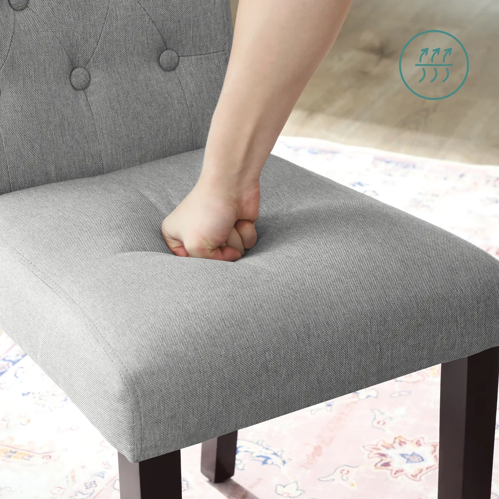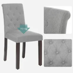 Was Sie bekommen: Ein Set von 2 Esszimmerstühlen mit Beinen aus Massivholz, einer maximalen Belastbarkeit von 110 kg pro Stuhl und einer großartigen Möglichkeit, Ihrem Zuhause auf stilvolle Art und Weise zusätzlichen Komfort zu verleihen