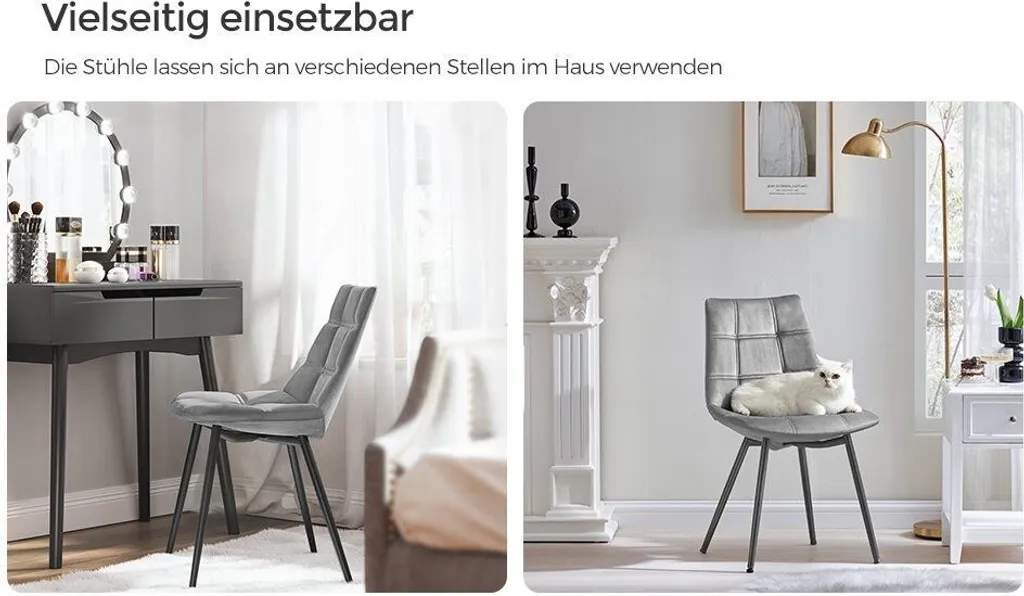 Mehr als nur Esszimmerstühle! Stellen Sie diese Polsterstühle in Ihr Homeoffice und arbeiten Sie komfortabler als je zuvor; platzieren Sie sie auf dem Balkon, um hier einen faulen Nachmittag zu verbringen; nutzen Sie diese Stühle überall dort, wo Sie sie benötigen