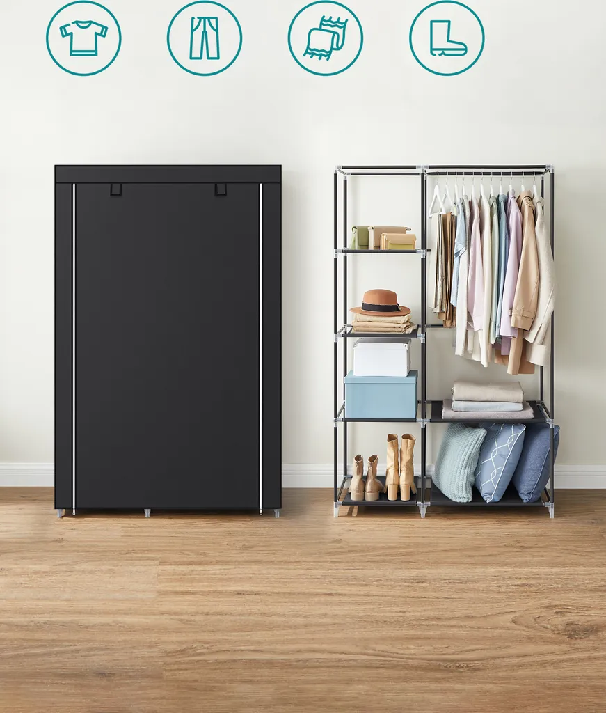 - [Möchten Sie Ihre Kleidung schützen?] Wir auch! Ihre Lieblingskleider müssen nicht unter Staub leiden. Rollen Sie die Tür einfach herunter und schließen Sie den Reißverschluss – Der Stoffüberzug sorgt für optimalen Schutz