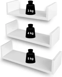 Durch 1,5 cm dicke Platte ist die Belastbarkeit jedes Hängeregals je nach Größe 3 kg, 4kg und 5 kg. Somit können auch schwere Dekos problemlos darauf gestellt werden