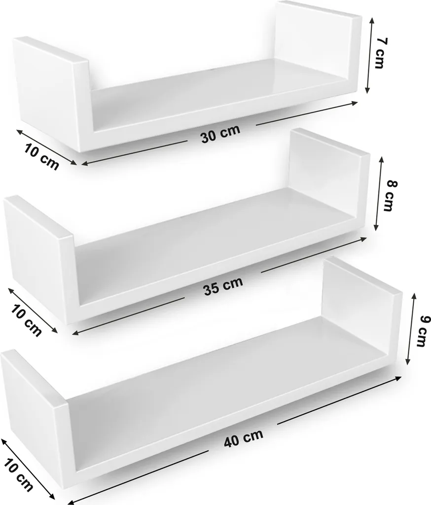 1. Die Tiefe des Regals ist nur 10 cm, somit ist es nicht geeignet für Bücher, CDs oder andere große Gegenstände.