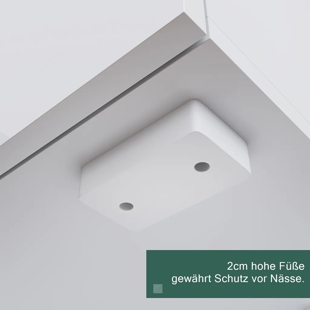 - Material: 15mm-MFC-Korpus (Spanplatte) + 3mm-MDF (Dichtplatte) Außerfläche + weißes UV Türoberfläche.