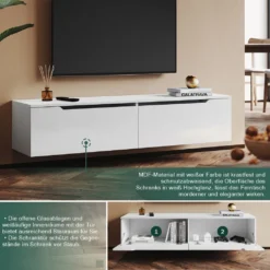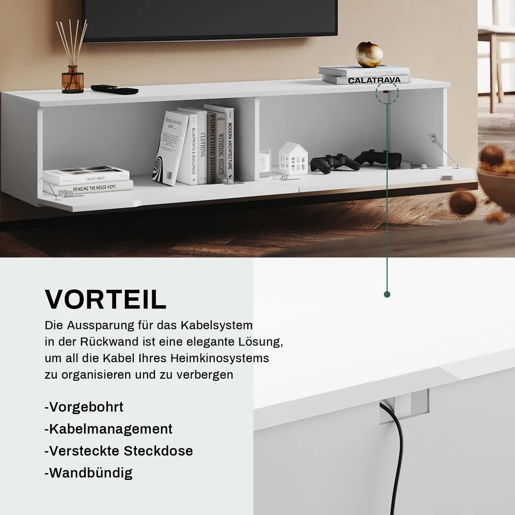 - Unser glänzend weißer TV Schrank ist besonders für modern eingerichtete Wohnzimmer geeignet.