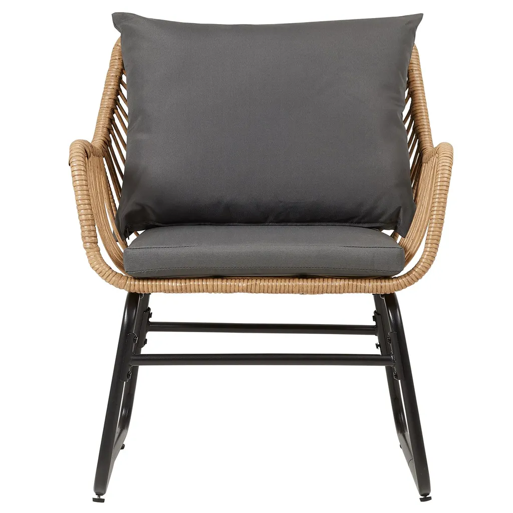 - Stabile Sitzschale aus Metall mit Polyrattan umhüllt.