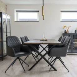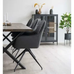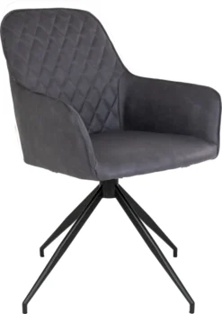 - Komfortabel: Der drehbare Ava Esszimmerstuhl weist ein schlichtes und dennoch attraktives Design auf. Der Bezug aus dunkelgrauem Kunstleder und die schwarzen Beine sorgen für höchsten Sitzkomfort.