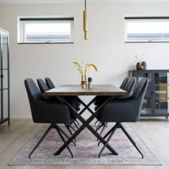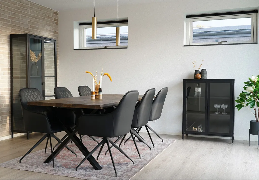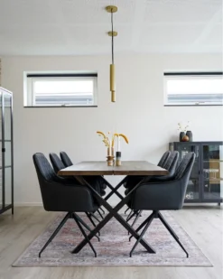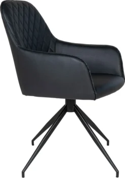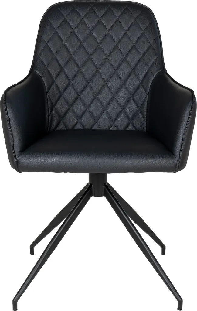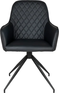 Der drehbare Esszimmerstuhl Ava aus schwarzem Kunstleder bietet Ihnen ultimativen Sitzkomfort.