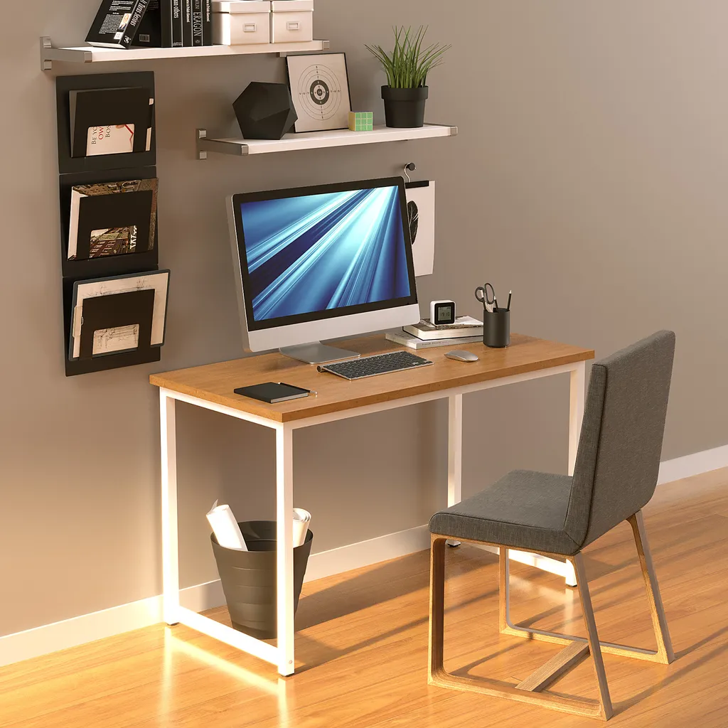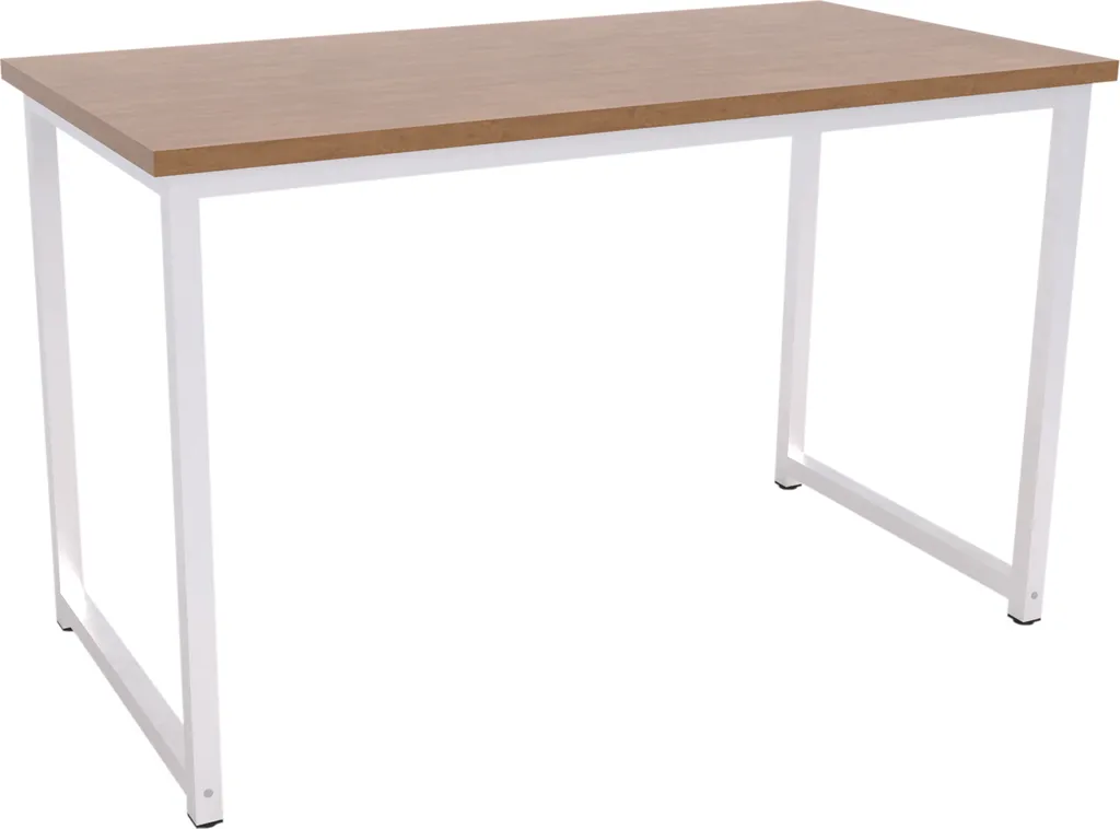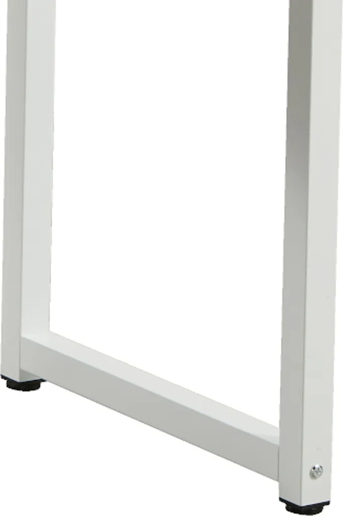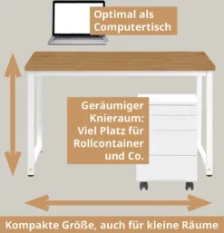 Durch die Kombination aus der Tischplatte in Holz-Optik und dem weißen Metall-Gestell passt dieser Tisch zu jeder Einrichtung und ist vielseitig im Büro, Wohnzimmer, Waschküche oder Flur einsetzbar.