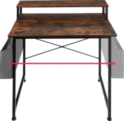 Verleihe Deiner Kreativität und Produktivität einen neuen Schub mit diesem funktionalen Schreibtisch von tectake. Eine klare Linienführung und die kontrastreiche Kombination aus warmem Holz und kühlem Metall ergeben den typischen Look des gefragten, nüchternen Industrie-Stils. Auf der praktischen Ablage findet ein Bildschirm perfekt Platz, während die seitliche Stofftasche großen Stauraum für Akten und Dokumente bietet.
