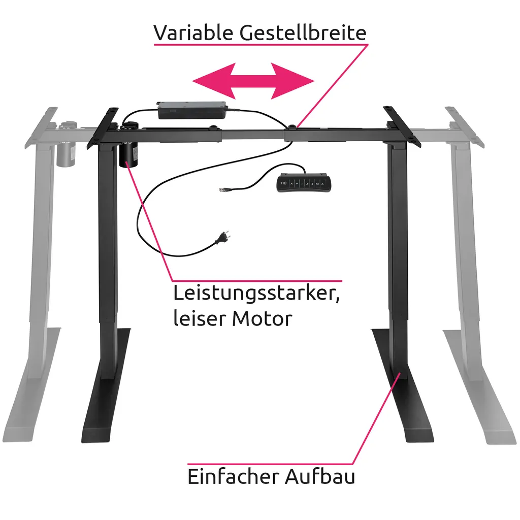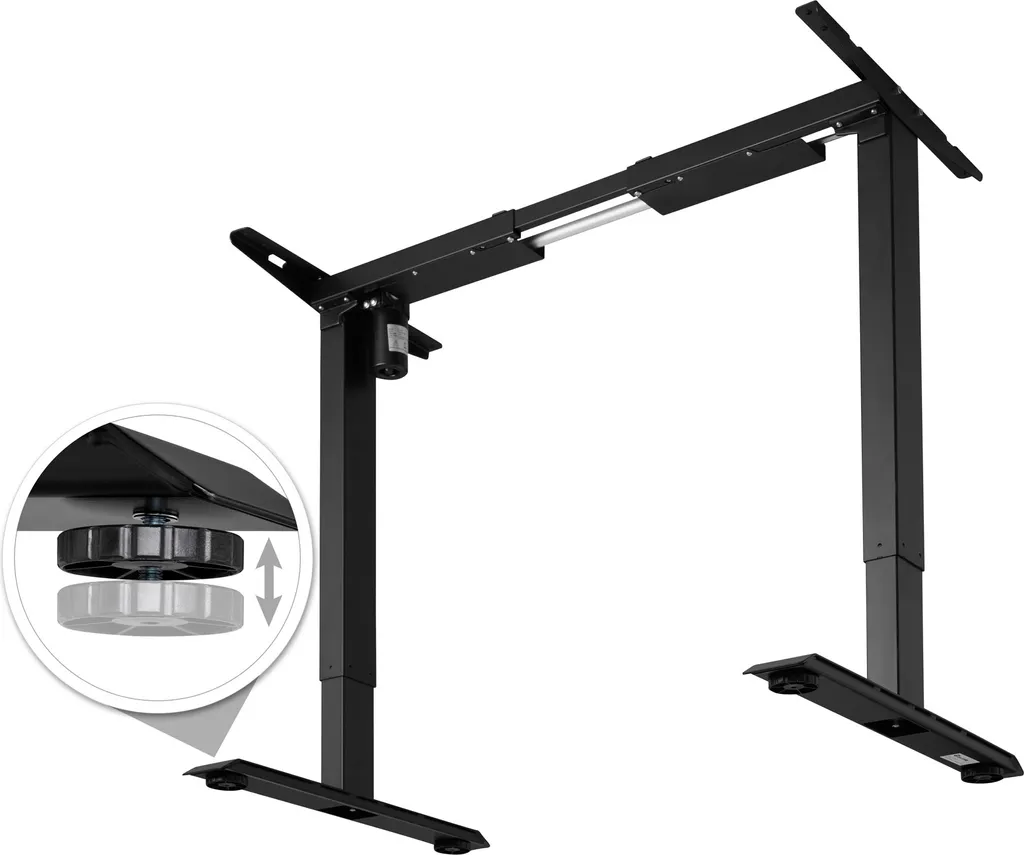 Mit dem variablen Tischgestell von tectake richtet sich Dein Arbeitsplatz nach Dir und nicht umgekehrt. Per Knopfdruck gleitet die elektrische Höhenverstellung stufenlos und sanft auf die von Dir gewünschte Position. Eine Memory-Funktion merkt sich bis zu drei benutzerdefinierte Einstellungen. Ein Alarm warnt vor zu langem Verharren in derselben Position. In der Breite ist das Modell ebenfalls sehr flexibel. Perfekt fürs Sitzen, perfekt zum Stehen: Das individuell verstellbare Tischgestell von tectake.