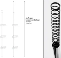 - bis maximal 280 cm Raumhöhe – kann durch Weglassen von ein oder zwei Stangen auch auf Badewannenecken usw. aufgestellt werden