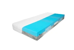 - Matratzenkern: “Multi-Pad” Komfortschaum (RG 35 35 kg/m³) mit orthopädisch wirksamen Schulter-Entlastungs-Einlagen (Gelschaum RG 40 kg/m³) und Becken-Stütz-Einlagen (RG 35 kg/m³)