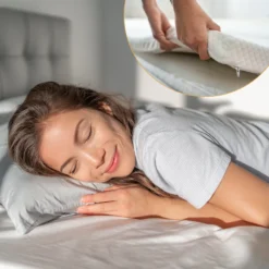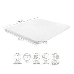 Der Topper ist nur ca. 8 cm hoch und passt somit ideal auf jedes Bett und unter jedes Spannbettuch. Der Bezug selbst ist per Reißverschluss abnehmbar und kann bei 40 °C gewaschen werden.