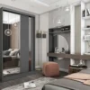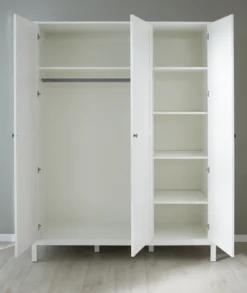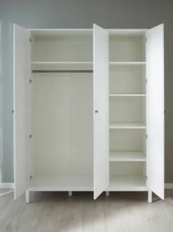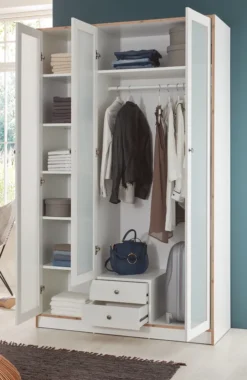 - 3-türig, 6 Ablageböden, teils höhenverstellbar, 1 Kleiderstange