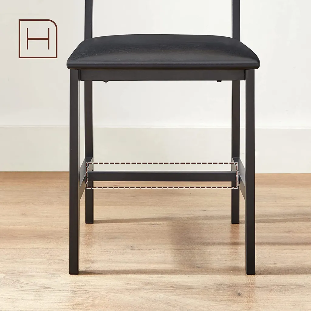Solide Struktur und hochwertiges Material: Schräge Beine, Querstange unter dem Sitz, Metallgestell und robuste Holzspanplatte – All dies verleiht den Stühlen eine hohe Stabilität (belastbar jeweils bis zu 100 kg)