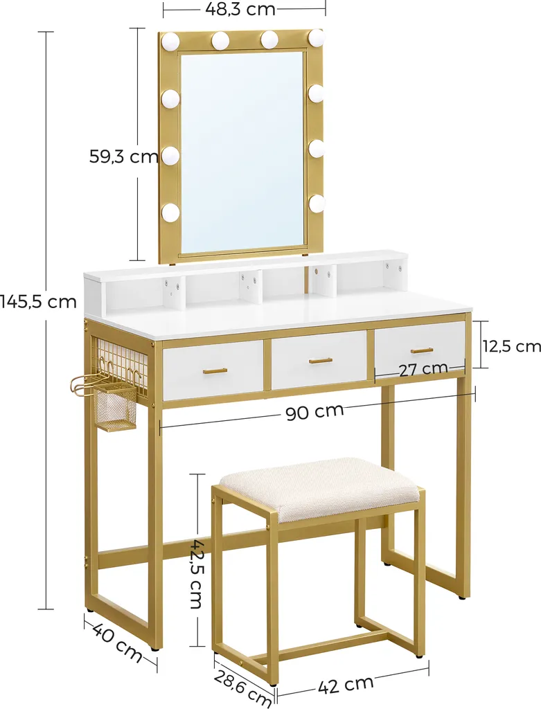 – Größe des Schminktischs: 90 x 40 x 145,5 cm (L x B x H)