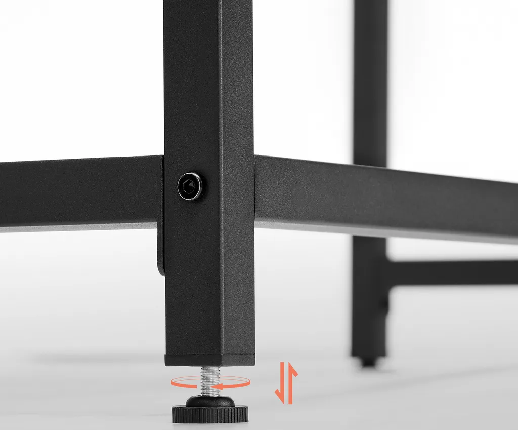 Hier kommt Verstärkung: Die Stahlverstrebungen im unteren und oberen Bereich des Gestells verleihen diesem Tisch eine besonders hohe Standfestigkeit. Laptop und Akten – Gegenstände bis insgesamt 50 kg stellen für dieses Möbel keine zu hohe Belastung dar